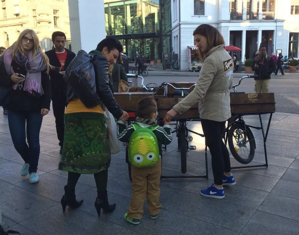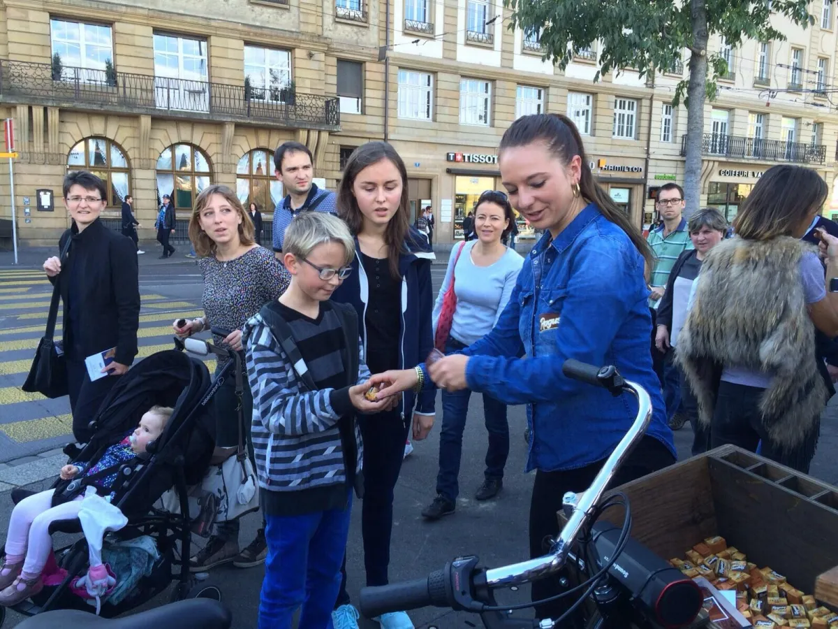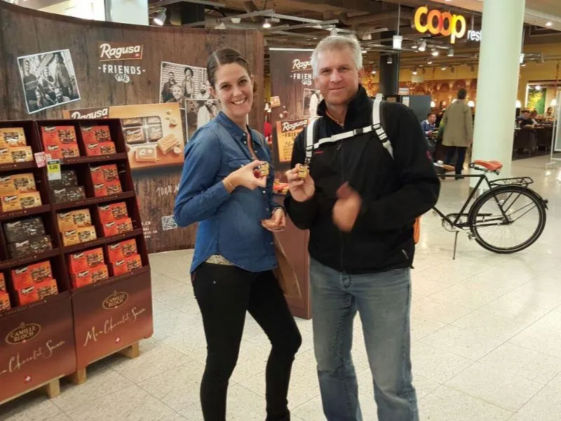An den Guerilla-Aktionen verteilten unsere PromoterInnen in 10 Städten der Deutsch- und Westschweiz Muster des neuen Ragusa Friends Blond.