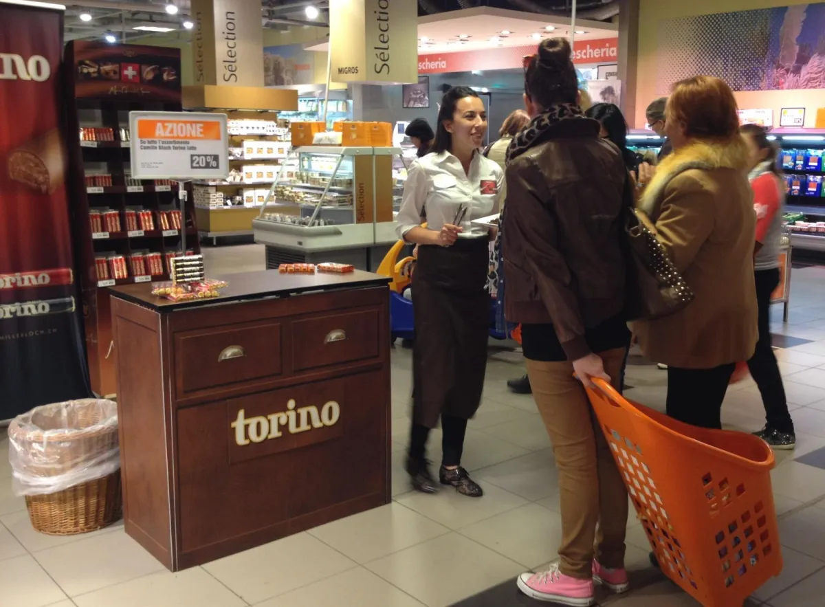 Die im 2013 erfolgreich gestartete Zusammenarbeit mit Camille Bloch SA wird neu durch den Degustationsbereich ausgeweitet. Somit führen unsere geschulten Camille Bloch Degustantinnen von Januar bis Juni in der ganzen Schweiz Torino Degustationen durch.